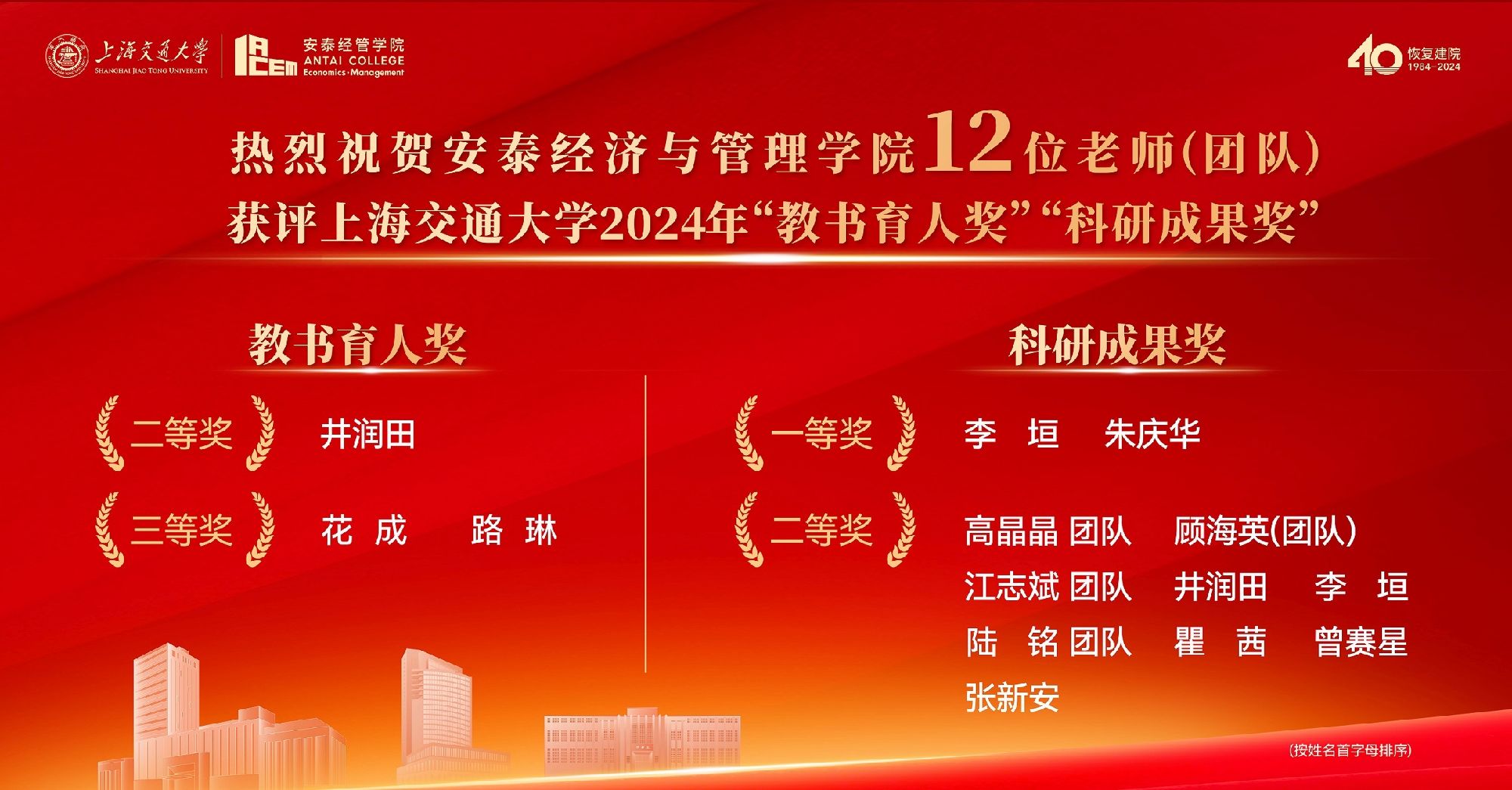 截至2024年6月,学院全职在岗教师170名,其中98.2%具有国内外名校博士学位。学院拥有院士(含双聘)3人,国家级人才计划项目获得者36人次,居国内商学院前列。近年来获各类国家与地方奖项一百六十余项。