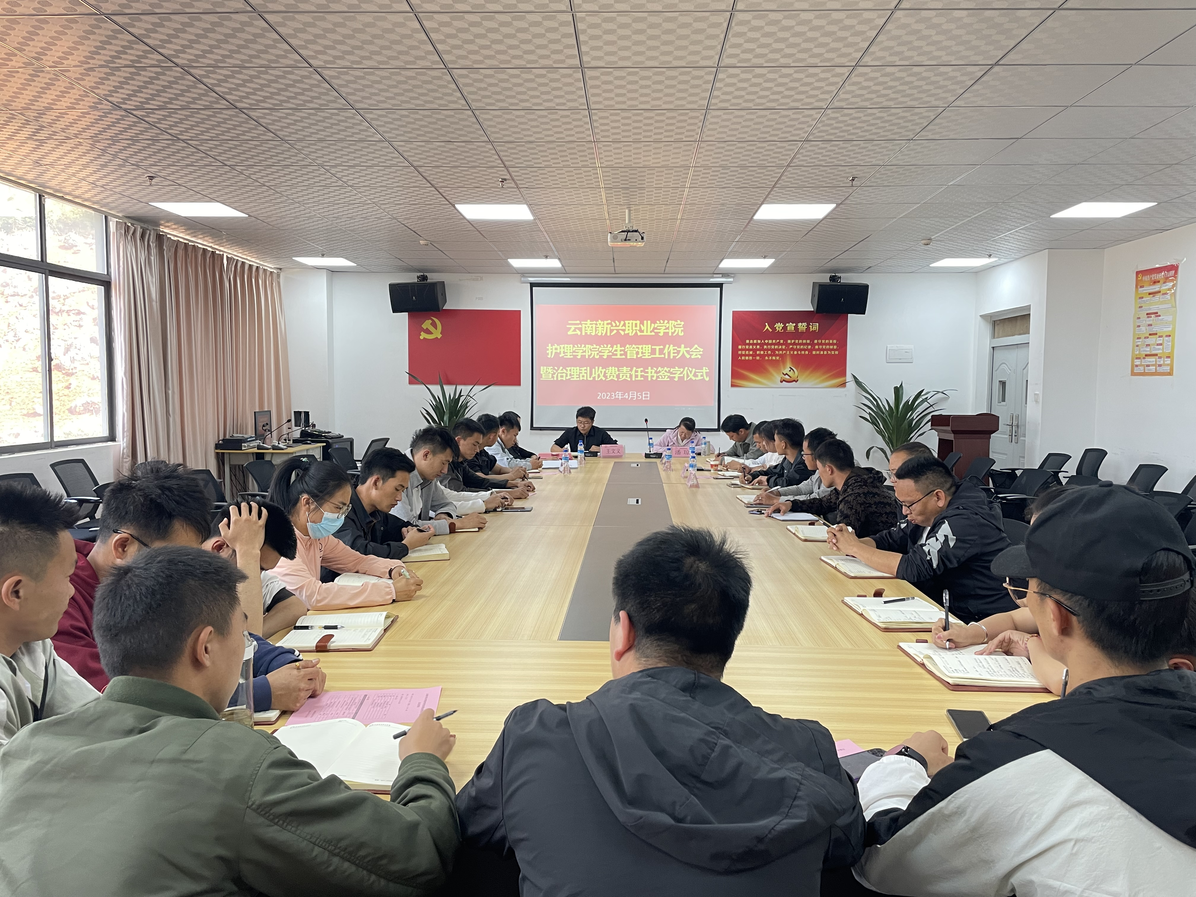 为进一步规范落实学校财务收费管理规定,提高护理学院学生管理质量,提升辅导员的思想道德素养和职业素养,2022年4月18日,护理学院召开学生管理工作大会暨治理乱收费责任书签字仪式。参加会议的领导有学校党委委员、副...