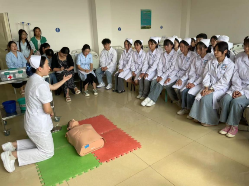 2023年5月25日第7节课在水海子校区实训楼510,护理学院新教师周文惠讲授了一堂实训课“心肺复苏术”,按“理论回顾-情景设置-示范教学-指导练习-回试”的流程开展实践教学。周老师操作熟练,知识点熟悉,吐字清...