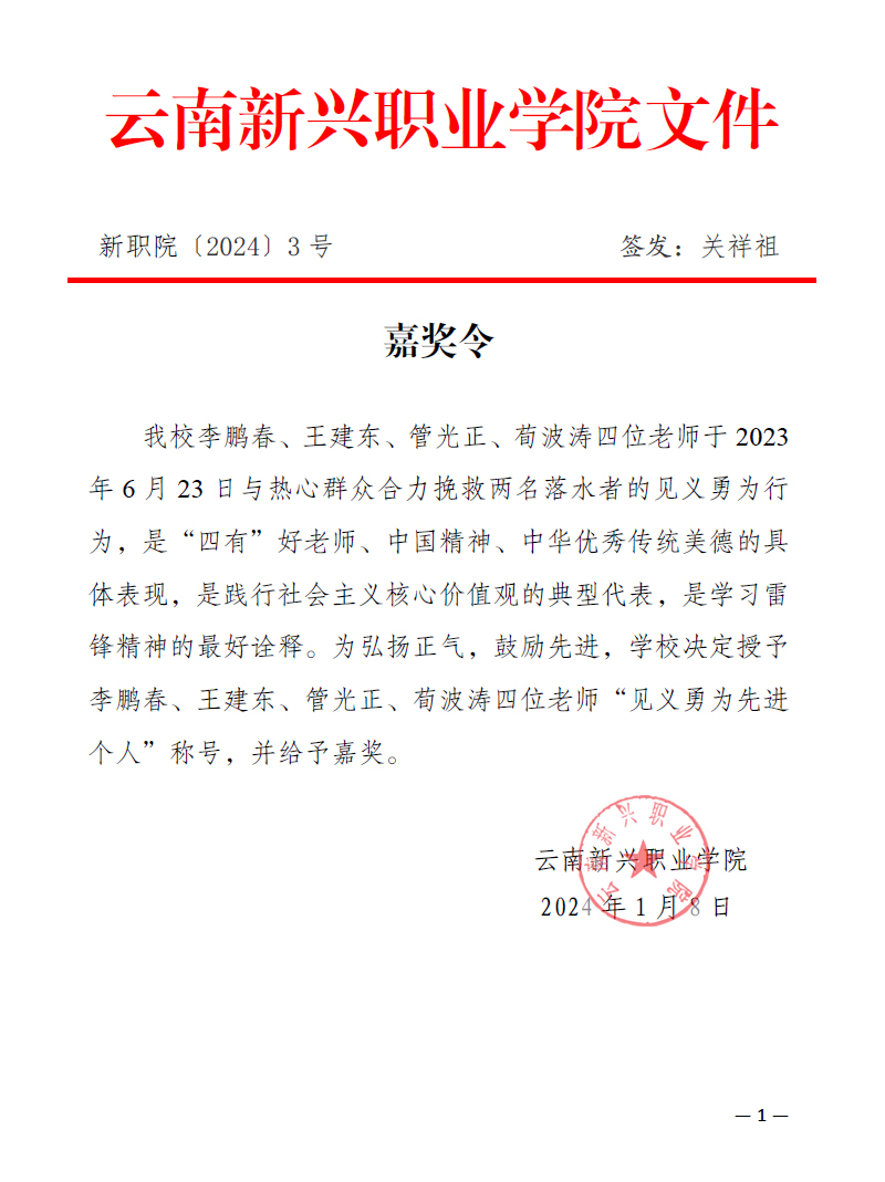 相关链接:“学习雷锋好榜样,助人为乐心里亮,见义勇为好儿郎,无私奉献真善良”——Beat365唯一官方网站老师英勇救两命关于对宜良县拟推荐省级表彰2023年度见义勇为先进群体的公示关于拟奖励2023年度昆明市见义勇为先进...