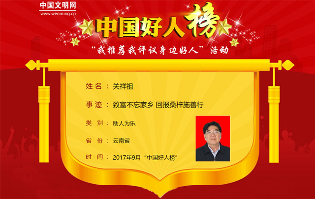 昆明信息港:为家乡脱贫致富关祥祖20年做了三件事