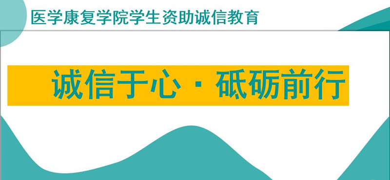 为进一步落实高校立德树人根本任务,增强大学生诚信做人、心怀感恩、勇担责任的优秀品质,医学康复学院坚持以“诚信教育”为主题,以“立德树人”为主线,精心组织,持续推进资助育人。医学康复学院于2023年6月5日至6月...