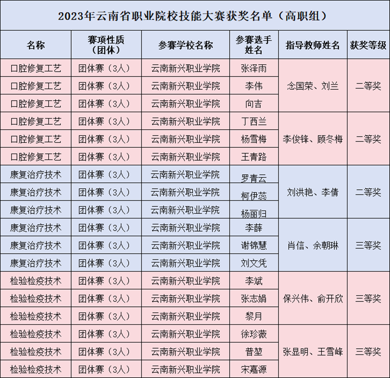 2023年9月25日—30日,由云南省教育厅主办的2023年云南省职业院校技能大赛如期举行,Beat365口腔修复工艺赛项、康复治疗技术赛项、检验检疫技术赛项共6支参赛队伍,经过激烈角逐在此次大赛中荣获佳绩。获奖情况如下...