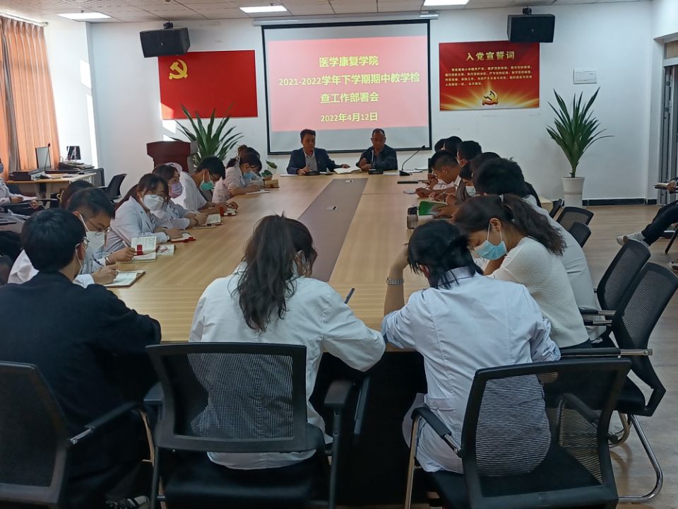 为有效落实学校教学质量各项监控管理工作,保证教学秩序有序开展,规范教学常规管理,促进教学质量的稳步提高,2022年4月12日星期二下午,医学康复学院认真组织召开了2021-2022学年度下学期期中教学检查工作部...