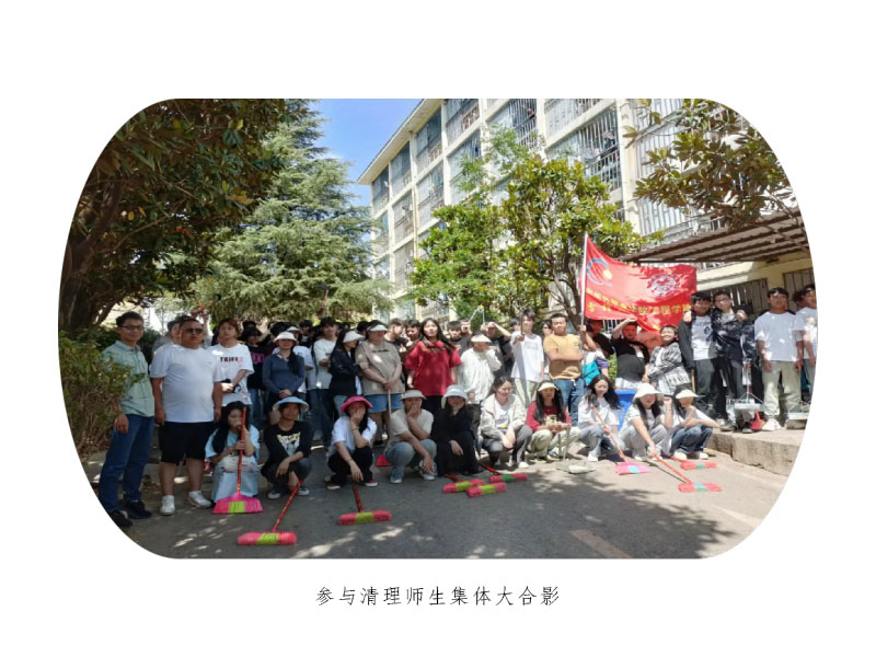 爱护环境,从我做起——工程学院学生对绿化区枯树叶进行清理