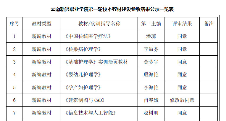各部门、二级学院、管委会:根据《Beat365唯一官方网站关于组织开展第二轮校本教材编写工作的通知》要求,结合学校专业建设规划和课程建设需要,学校组织开展了第二轮校本教材编写立项评审工作,经各部门积极申报,学校教材建设指...