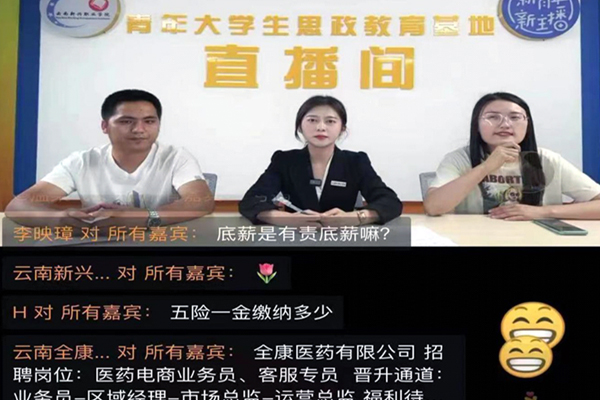 2022年4月28日晚上8:00,在禄劝新校区图书馆四楼青年大学生思政教育基地直播间举办了药学院毕业生第一次线上就业宣讲直播会,学校副校长杨亚梅来到直播间,组织并指导了首场就业直播见面会。此次就业宣讲是学校第一...