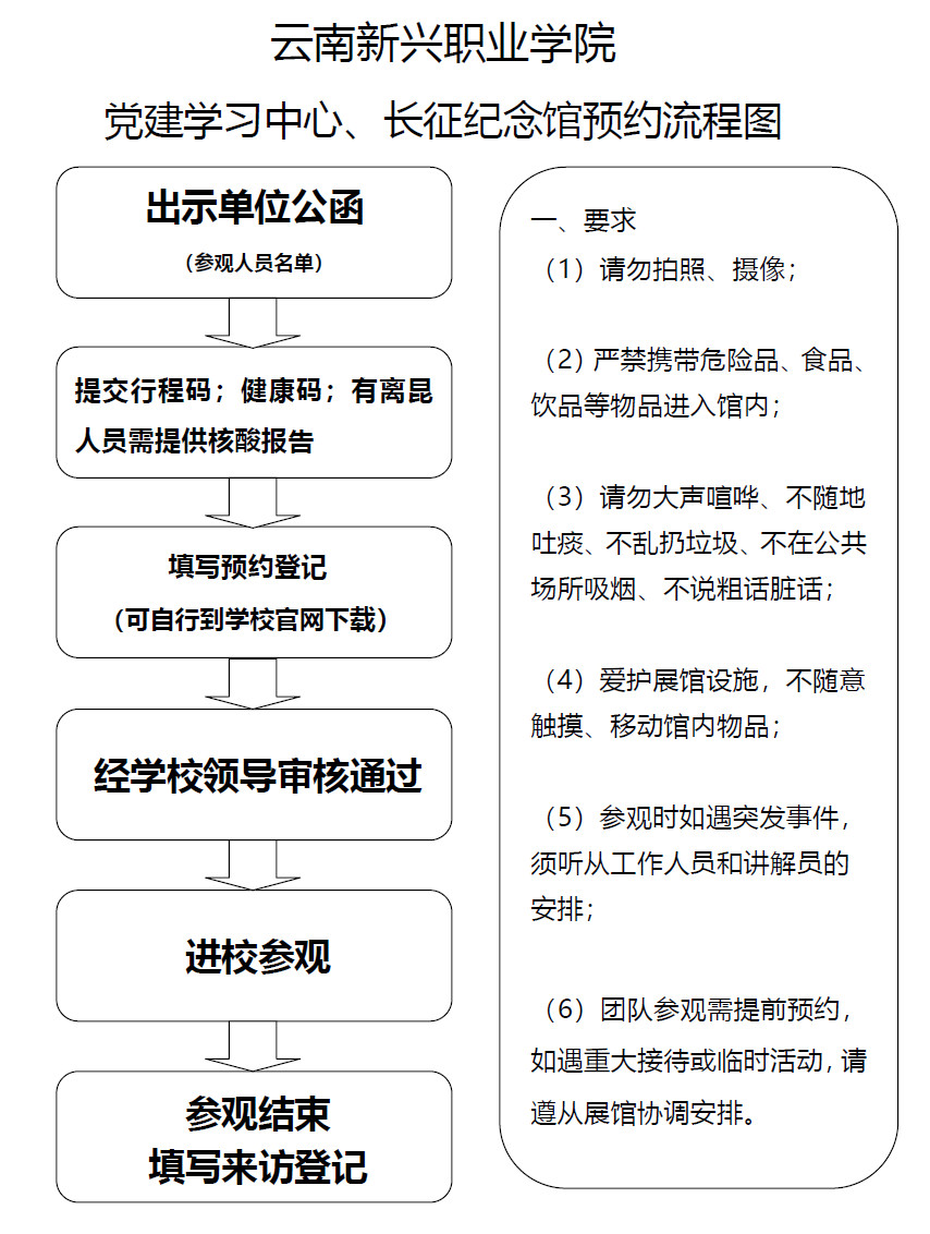 Beat365唯一官方网站党建学习中心、长征纪念馆预约流程图