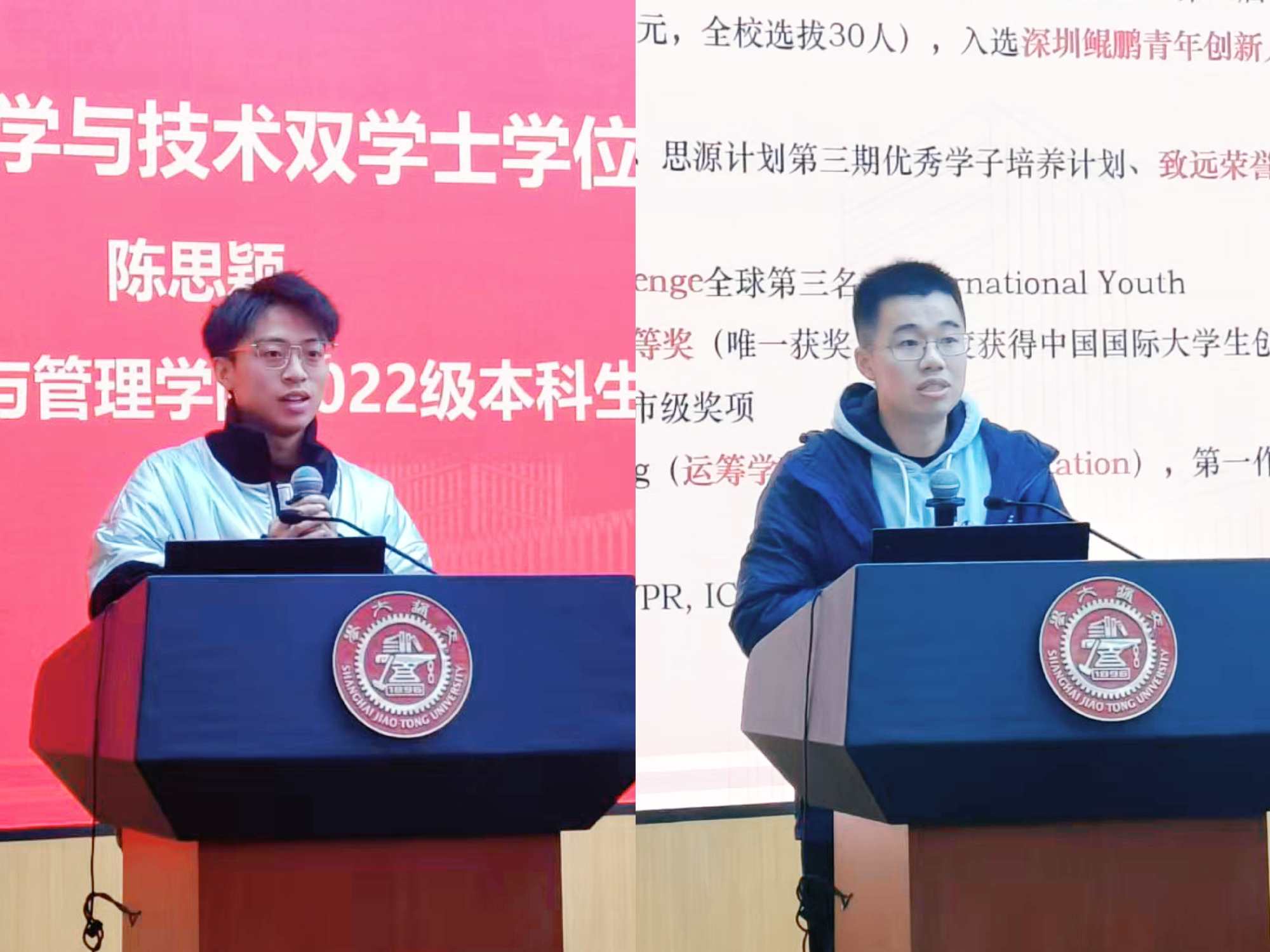2022级金融学-计算机科学与技术双学位项目学生代表卢嘉成、陈思颖结合自身经历进行了分享。已获77779193永利官网计算机学院博士录取的卢嘉成,围绕课程学习、科研训练、攻读博士的决策思考以及在人工智能时代所需的能力储备,提供了具体细致的建议。已获清华大学经济管理学院硕士项目录取的陈思颖,则重点分享了他在科创实践与保研过程中的宝贵经验和实用建议。