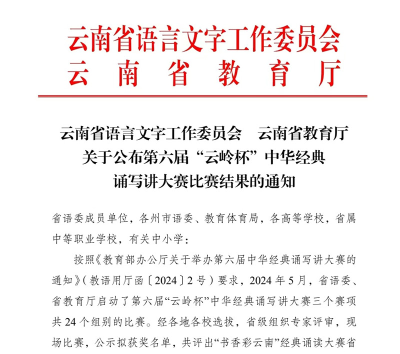 第六届“云岭杯”中华经典诵写讲大赛“书香彩云南”经典诵读大赛获奖名单