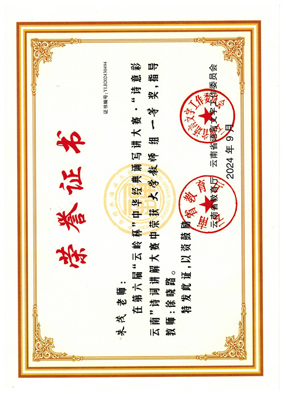 2024年5月Beat365唯一官方网站心理咨询中心按照云南省语言文字工作委员会、云南省教育厅《关于举办云南省第六届“云岭杯”中华经典诵写讲大赛的通知》要求,组织中华经典诵写讲大赛校赛,并将表现突出的4名校赛优秀选手推荐参加三个赛项四个组别的省赛。近日,收到云南省语言文字工作委员会 云南省教育厅关于公布第六届“云岭杯”中华经典诵写讲大赛比赛结果的通知,学校推荐作品全部获奖,共获奖6项,分别为:一等奖1项、二等奖3项、三等奖1项、优秀指导教师奖1项。获奖情况如下: