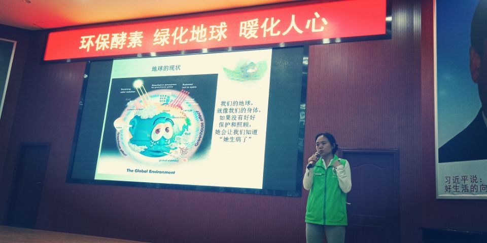 吴建玲医生是环保酵素讲师,眼科学硕士,眼科主治医师,肺癌康复者,酵道孝道资深学长。2011年罹患肺癌后,通过学习传统文化结实环保酵素全球推广者,马来西亚的自然疗法医师温秀枝,并追随她深入研习环保酵素及自然疗法,让自己成功康复。为了把让自己重生所得到的爱传递出去,禀持“绿化地球,暖化人心”的信念,走上做公益的道路。酵道孝道公益环保团队以制作和运用环保酵素、规模性减少生活垃圾处理量的行动来“绿化地球 暖化人心”为宗旨和责任。吴老师从四个方面来讲环保的重要性。第一,直面未来;第二,我们应该为地球做些什么?第三,唤醒;第四,制作环保酵素,环保行动从我做起。吴建玲老师团队的义工还在现场为师生们演示了制作环保酵素的程序。