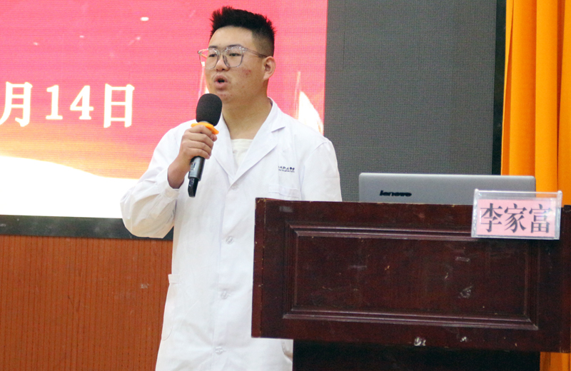 第三项议程:学生代表发言。护培4班李进燔同学分享了他的学习、备考的经历和心声。他说我们要多看、多记、多背、多想,给自己预定学习目标,不断反思总结,他坚信笨鸟先飞,勤能补绌;他号召同学们应该互相鼓励、共同努力,心在哪,行动就在哪,付出在哪,收获就在哪。他祝愿同学们取得一个满意的成绩。