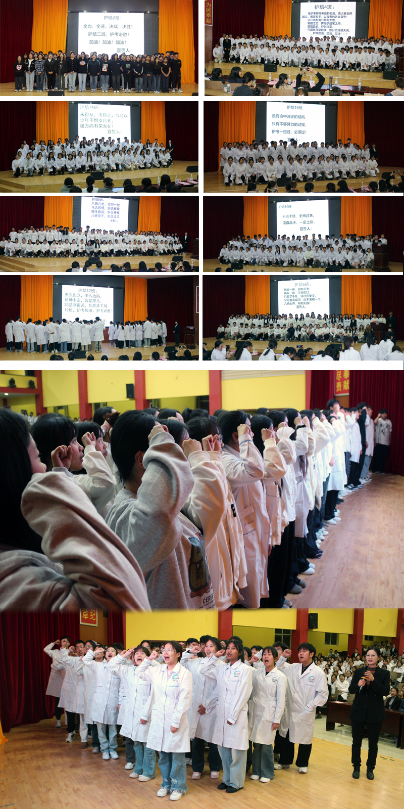 在主持人的祝语中,誓师大会落下帷幕。全场齐声喊出了我们的目标:2024护考,我们一定过、一次过、一起过!所有新兴学子,护考加油!