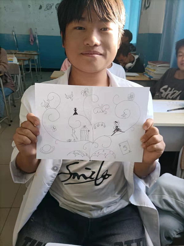 15分钟后施老师开始给学生分析:心理现象是人对客观物质世界的主观反应,客观世界由于经过不同人的心理加工而呈现不同的样貌。在绘画过程中构图的大小、线条的长短、下笔的轻重等都从侧面反应出绘画者内在潜意识活动。