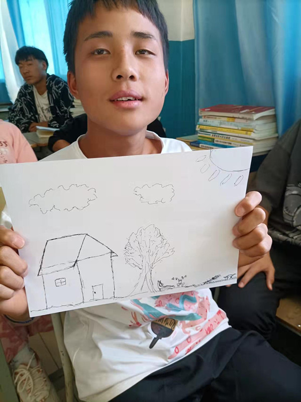 讲解后同学们对自己的画都进行了分析。在画房子时,绝大多数同学的房子是有门有窗的,说明这些同学的家庭关系良好,有情绪疏通的渠道。也有同学在房子的墙面上涂了阴影,说明这些同学在家里感到了压抑,可能是父母在和孩子交流的时候过于强势,孩子不能正面表达自己的想法,导致了心理冲突。很多同学画的树的树冠是很大的,说明同学们都有比较远大的理想,而且比较自信。也有少部分同学在树干上画了树洞,说明在成长过程当中心理受到过创伤。在画人时,大部分同学的人都画的比较健全,说明同学们对自我的意识是比较完整的。也有少部分同学画了背影或火柴人,说明这些同学对自我的认识不完善,在人际交往方面可能有防备、受挫心理。