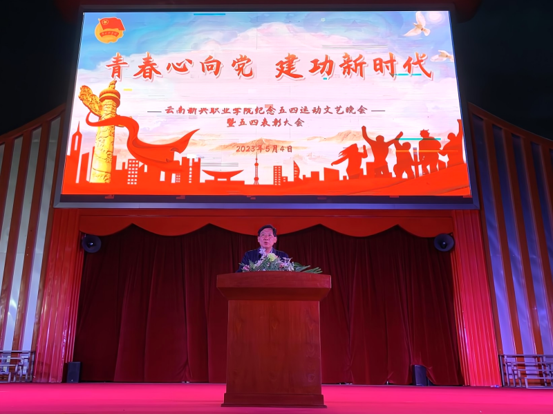 刘沧山校长为本次活动致辞,向全校广大青年朋友和青年工作者致以了诚挚的问候,并对全校广大青年提出要争做有理想、敢担当、能吃苦、肯奋斗的新时代好青年,要继承五四光荣传统,高举爱国主义旗帜,发扬创新精神,与时俱进,敢于上下求索、开拓进取,带头倡导良好社会风气,始终保持积极的人生态度、良好的道德品质、健康的生活方式,努力把自己塑造成为祖国建设的有用之才,栋梁之才。在开创新时代中国特色社会主义事业新局面、实现中华民族伟大复兴的征程中,不断谱写无愧于前辈、无愧于时代的更加辉煌的篇章!