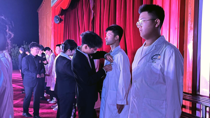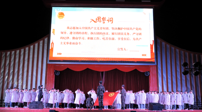 紧接着李地新副校长宣布了2023年度新团员名单,老团员给新团员佩戴团徽。