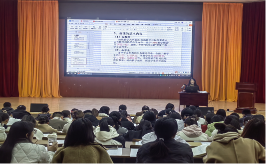 报告先由阮琼教授给大家从如何上好一堂课的意义展开讲解,首先如何备课,备课除了要做到备教材外,还要备学生、备教法,也就是学生的心理状况、兴趣需求、启发式教学、互动教学、多种教学方式等,同时要贯穿“OBE”教学理念及“两性一度”思想,并将“思政元素”贯穿于教学全过程中。其次授课环节,要求我们要做到教室环境整洁、教师仪容仪表、授课语言、板书等规范,最后结课环节,要求我们要有课后小结、布置作业、预习、复习等内容,为我们的老师作了一场生动有趣的高质量报告,让每位教师都受益匪浅。