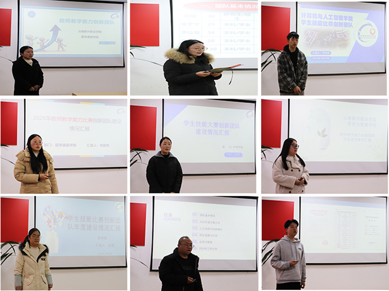 随后,24支创新团队对照建设目标,紧紧围绕团队基本情况、团队建设举措与过程、建设目标达成度、标志性成果、存在的问题和下一步工作计划等方面进行详细阐述。汇报内容丰富务实,既有教学方法革新、科研项目突破的具体成效,也有学生技能培养、专业内涵提升的实践探索,充分展现了各团队在年度建设中的积极作为与丰硕成果。