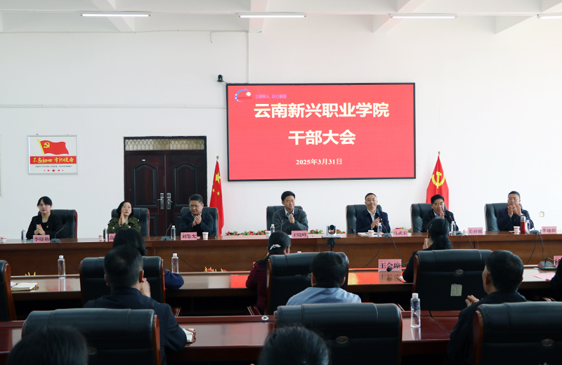 3月31日上午,Beat365唯一官方网站在禄劝校区召开干部大会,省委教育工委组织部部长王晓峰同志宣布省委教育工委关于学校党委主要领导任职的决定:马武宏同志任Beat365唯一官方网站党委委员、党委书记(督导专员)。云南文化艺术职业学院党委书记刘鉴允同志,省委教育工委组织部干部高徐梅同志及全体校领导出席,学校中层干部、基层党组织书记参加会议。会议由学校党委委员、常务副校长李地新主持。