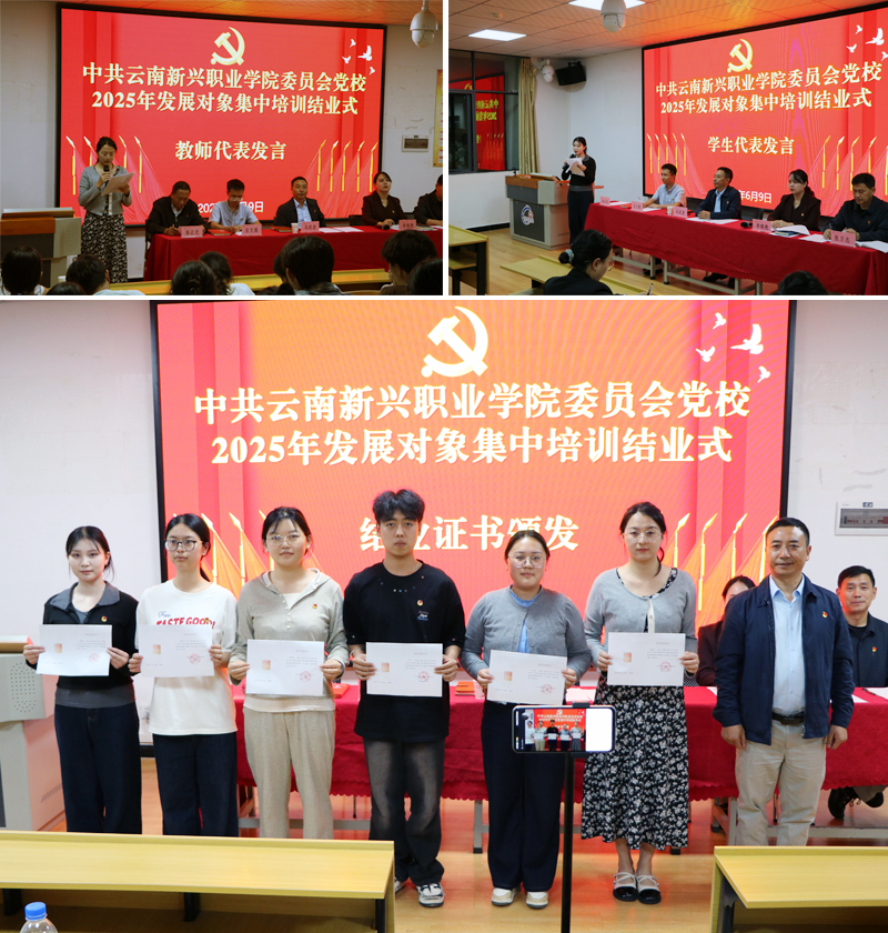 党委党校2025年上半年党员发展对象集中培训的顺利开展,是学校党委深入贯彻落实党的二十大精神、党的二十届三中全会精神、习近平总书记考察云南重要讲话精神,深化新时代党员队伍建设的重要举措,为学校党员发展工作注入了新动能。学员们纷纷表示,今后将以更高的标准要求自己,不断提高自身素质,坚定不移听党话、跟党走,争取早日成为一名光荣的共产党员,为推进强国建设、民族复兴伟业贡献青春力量。