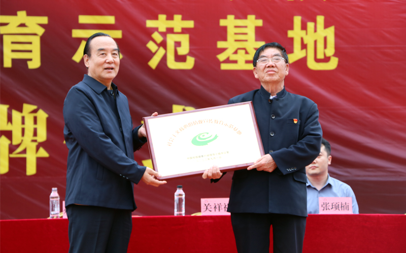 2024年11月8日,邀请郭明义、李克等到优秀人士到校给师生做讲座。下图为郭明义与学校董事长关祥祖合影