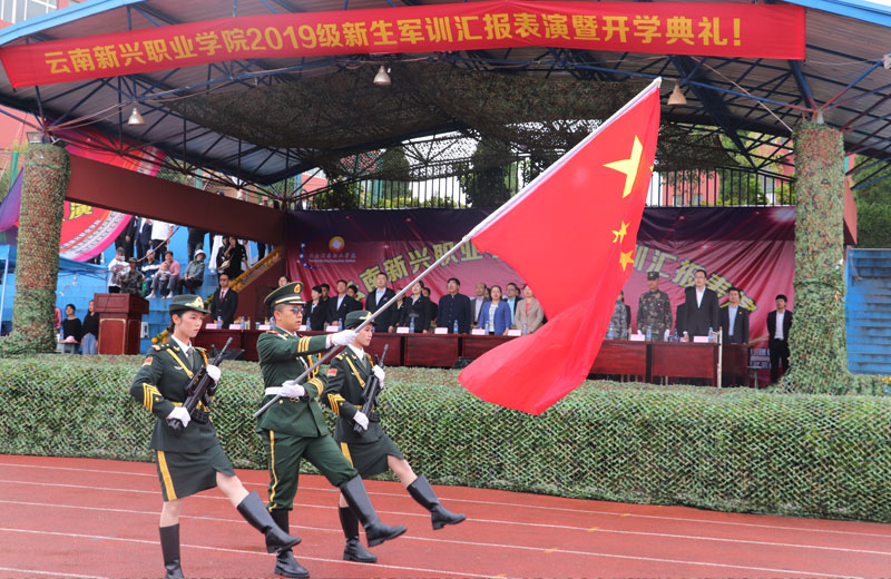 2019年9月6日上午9点,“Beat365唯一官方网站2019-2020学年开学典礼暨新生军训汇演”在学院田径场如期举行。典礼上莅临指导工作的有云南省委高校工委大学生工作部侯炳霞部长、云南省教育厅学校保卫后勤处杨勇科长、盘龙区人民武装部李龙副部长,参与来宾有校企合作单位的云幼集团张鹏董事长等,学院出席的领导有学院董事长、党委副书记、院长关祥祖同志,学院党委书记张毅永同志,学院副院长李地新、潘琼、李艳梅、李加磊同志,以及学院各处室负责同志和部分教师。