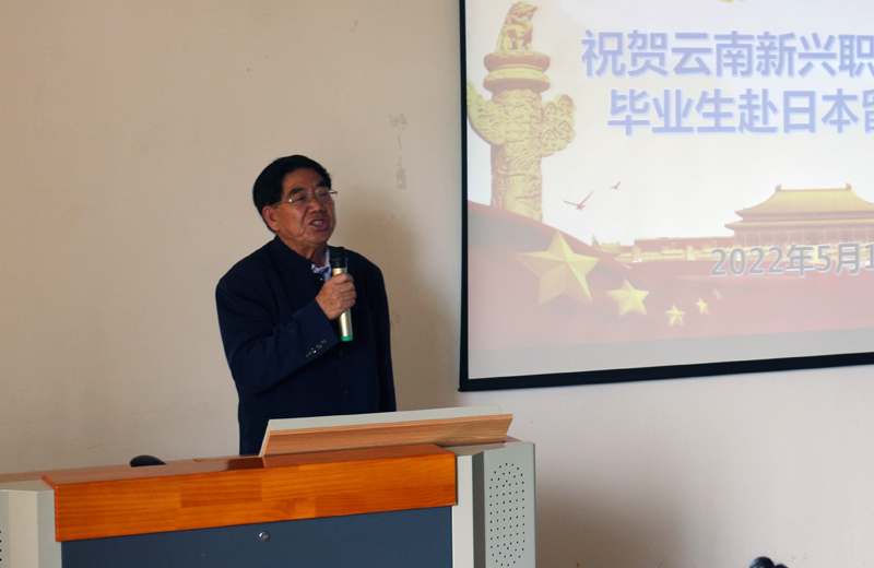 李地新副校长代表学校致辞,向取得留学日本资格的毕业生表示祝贺,并对他们提出期望和祝福,要求赴日学生:“永保爱国爱党的中国心,不忘父母的养育、不忘母校的培养、牢记祖国的恩情;珍惜机会、勤奋学习、认真工作,把学到的技术和管理经验带回祖国,为祖国护理事业贡献自己的力量;走出国门,打开国际视野,弘扬正气,为‘中国梦'而努力奋斗,学成归来、报效祖国。”