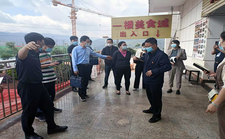 为强化学校食堂食品安全监管,预防食品安全事故,确保广大师生舌尖上的安全。5月26日上午9:00,省、市、县市场监管局一行10余人在禄劝县教体局张副局长的陪同下莅临Beat365进行食堂食品安全专项检查。常务副校长李地新、副校长李晓艳、后勤保卫处长陈林、副处长聂天洪、关汉武参加检查。