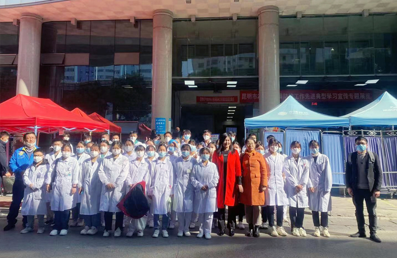 金秋十月,在党的二十大召开之际,落实习近平总书记提出的办人民满意的教育,落实落细各项工作,让家长满意、学生满意,也为进一步加强实习生管理,提高人才培养质量,关心关爱实习生,2022年10月19日,Beat365唯一官方网站李艳梅副院长、党委委员带领传统文化与心理咨询中心主任徐晓路、药学院学生科长杨晟泽、实习就业处郑鹏老师、药学院辅导员张红老师一行5人走访了云南新新华医院、云桥医院、云南健之佳总部、云南西部药业有限公司看望Beat365实习生,每到一家单位都受到了实习单位领导的热情接待和实习生的热烈欢迎。学校领导老师了解实习生和工作和生活情况、疫情防控情况及遇到的问题困难和心理健康状况等,现场为实习生答疑解惑并想方设法为他们排忧解难,同时也了解企业对学校人才培养的需求,加强合作,洽谈实习和就业及拓展实习基地等事宜。