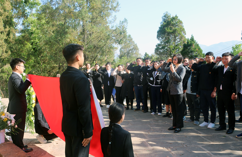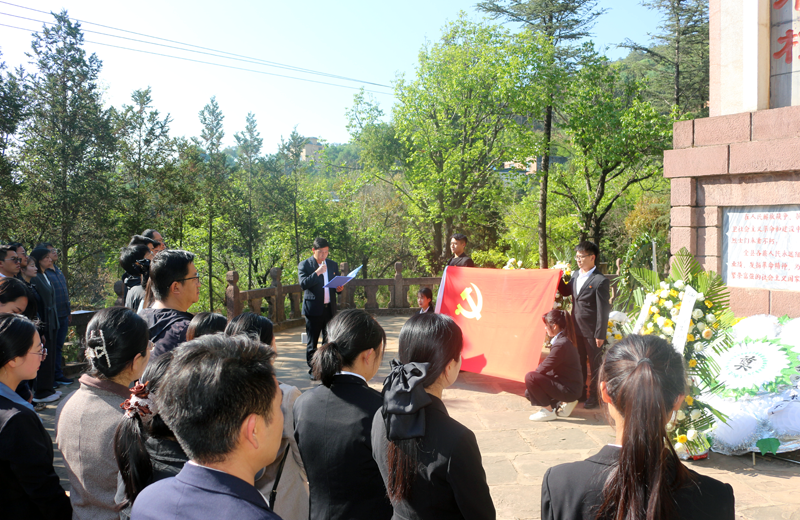 鲜花献英烈、哀思祭忠魂。主题党日活动上,党委副书记孙克松同志带领全体党员重温入党誓词、行政党总支书记张万志同志讲授现场党课,开展了集体默哀、敬献鲜花、瞻仰烈士纪念碑、青年大学生代表诵读烈士家书等活动,以此悼念长眠在禄劝这方热土的英灵,缅怀先烈们的丰功伟绩,表达了对革命烈士的无限哀思和崇高敬意。