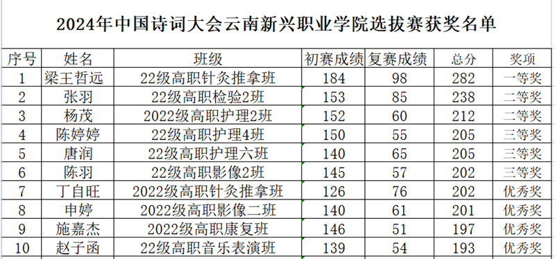 经过紧张激烈的角逐,Beat365参赛的10名学生在比赛中成绩优异。最终评出一等奖1名,二等奖2名,三等奖3名,优秀奖4名。本次校内选拔赛一等奖获得者将代表学校参加云南省选拔赛。获奖名单如下: