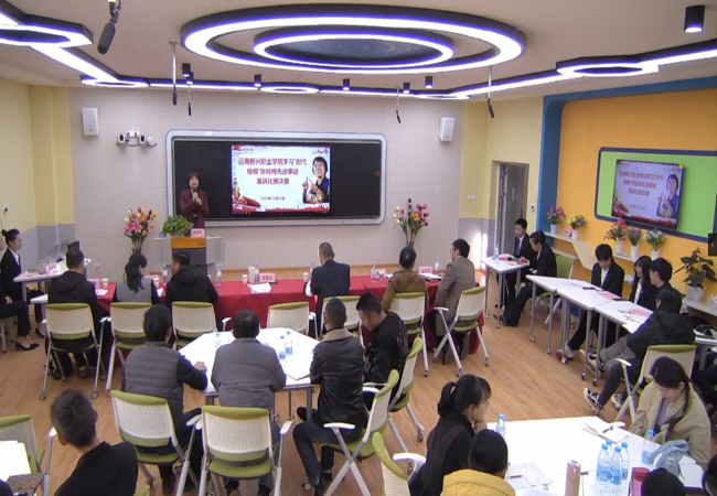 12月25日,Beat365唯一官方网站在新校区录播室开展以“对标先进塑师德,争做四有好教师”为主题的学习“时代楷模”张桂梅先进事迹演讲比赛决赛。本次活动邀请了云南省演讲协会副会长冯书老师、昆明市委党史室陈国勇老师、禄劝县团委孟劲松老师作为评委莅临学校演讲比赛现场,学校党委书记张毅永、常务副校长李地新、副校长李艳梅、党委宣传部部长李汉雄作为评委参加了演讲比赛。各党支部支委及师生代表60余人观看了决赛。