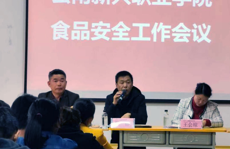 为进一步加强学校食品安全管理,筑牢校园食品安全防线,2023年3月7日下午15:00,在禄劝校区护理学院110会议室召开Beat365唯一官方网站2023年春季学期食品安全专项工作会议,王会琼副校长、后勤处陈林处长、后勤服务公司关汉武副经理、宿管员、保安员、2023年春季学期学校供货商、各经济实体及食堂负责人到场参加会议,会议由保卫处孙超处长主持。