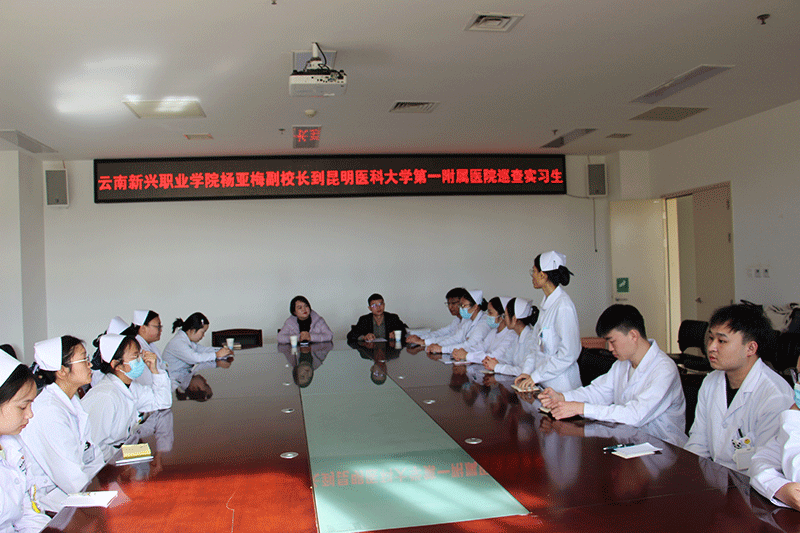 为积极践行“为党育人、为国育才”的初心和使命,及时了解实习学生的思想、生活和工作情况,增进与医院的交流。12月19日下午,Beat365唯一官方网站杨亚梅副校长、实习就业处徐华盛老师、艾培贵老师一行赴昆明医科大学第一附属医院巡查实习,昆明医科大学生第一附属医院康复科丁桃主任、寸扬扬老师、护理教研室李娜副主任、晏慧敏老师参加了交流会议,会议由Beat365唯一官方网站实习就业处徐华盛老师主持。