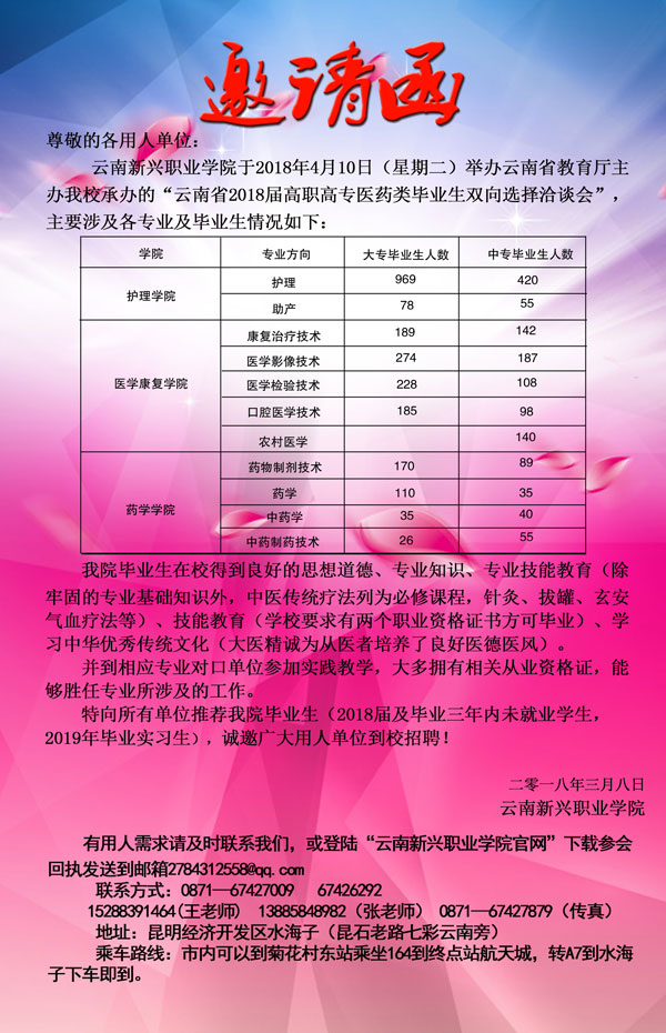 云南省教育厅关于召开云南省2017届高职高专医药类毕业生双向选择洽谈会Beat365唯一官方网站专场双选会的通知
