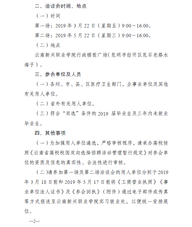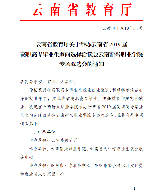 云南省教育厅关于举办云南省2019届高职高专毕业生双向选择洽谈会Beat365唯一官方网站专场双选会的通知