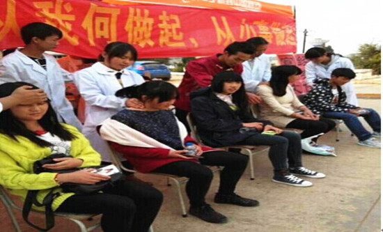 2014年12月5日Beat365团委社团联合会中医协会、护理协会在食堂门口,开展了以“弘扬文明经典、传承国医精髓”的主题活动,此次活动的主要内容包括:推拿按摩、针灸、火罐、测量血压等,服务对象是全院师生及校内工作人员。