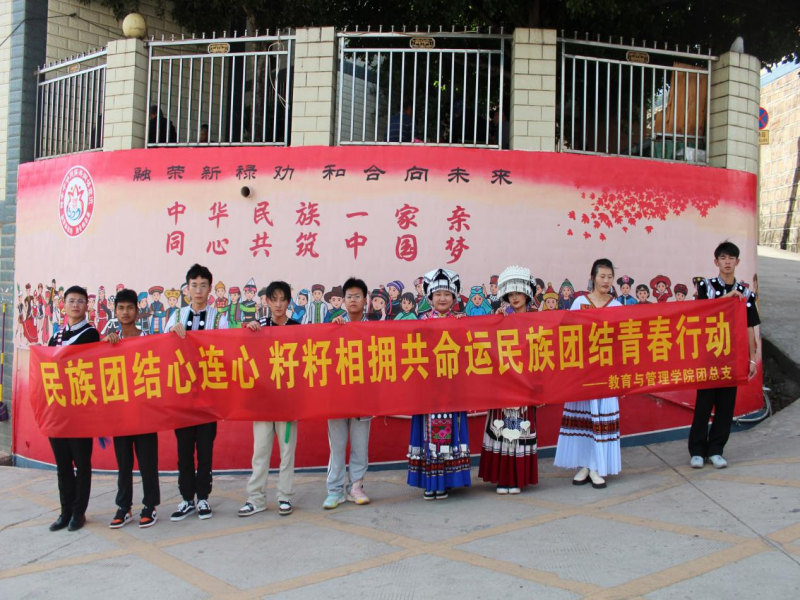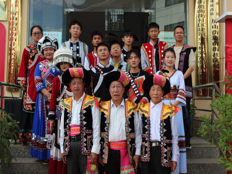 2023年10月23日教育与管理学院的同学们穿上了民族传统服饰,去到了禄劝屏山街道南街社区开展了民族团结心连心 籽籽相拥共命运民族团结青春行动。
