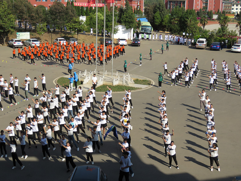 主持人宣布比赛赛制及评分标准,介绍到场各位老师及嘉宾。比赛正式拉开帷幕。穿着统一的着装有序的进场,踏着优美的旋律,翩翩起舞,激情四射。自信的脸庞洋溢着青春的笑容,活泼的身姿散发出美的韵律,队列变化整齐有序,舞姿或优雅或从容,或热情或奔放,彰显了新兴学子良好的精神风貌。欢快的节奏,催人奋进,跳跃的音符,荡人心弦,赢得观众和评委的阵阵掌声,整个校园洋溢着欢乐热烈的气氛。
