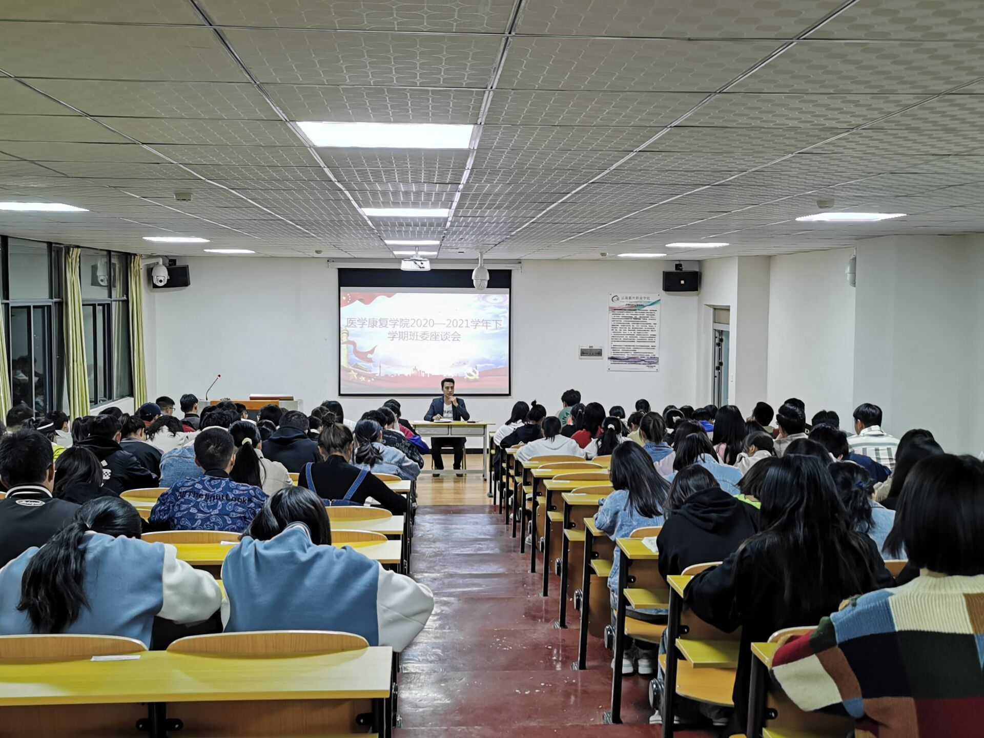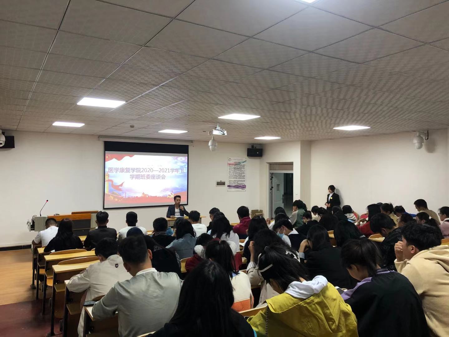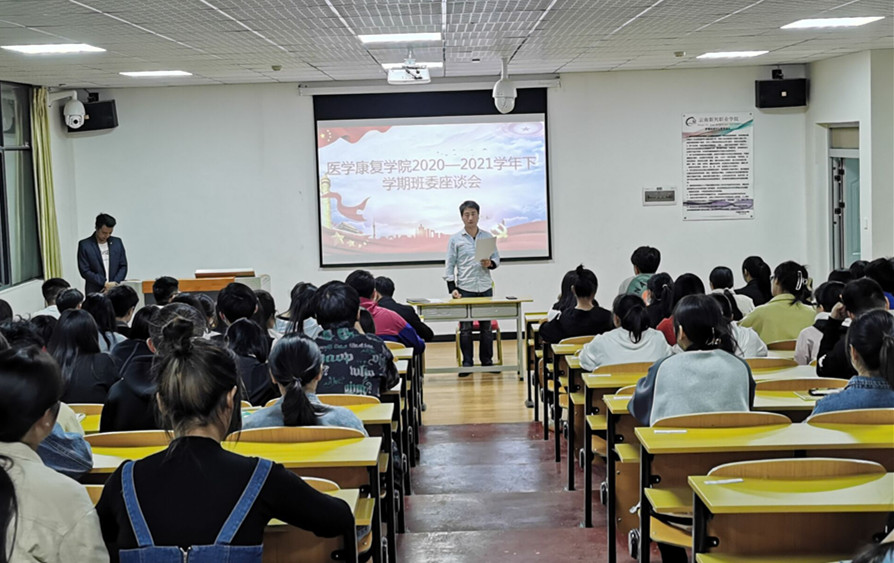 为加强教风、学风建设,及时掌控常规教学运行情况,及时了解和收集医学康复学院教师课程教学工作情况,加强教学质量的监控评价,另一方面更好的了解本学期开学以来各专业学生学习及生活方面的情况、以及学生目前存在急需解决的问题。医学康复学院于2021年3月16日在护理学院10-110室举行了班委座谈会,本次会议有医学康复学院领导和所有班干部参加。