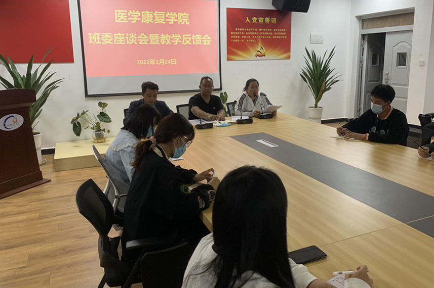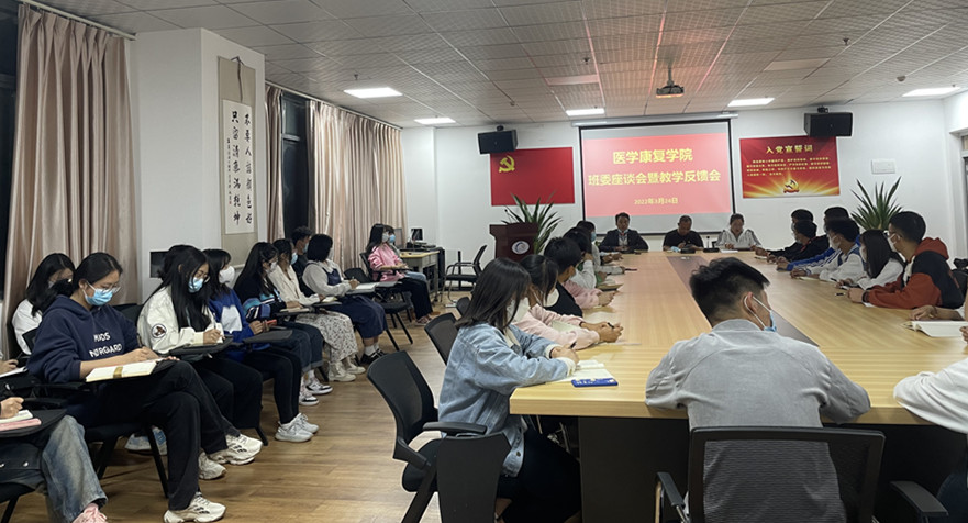 为及时了解和收集医学康复学院教师课程教学工作情况,加强教学质量的监控评价,更好的了解各专业学生学习情况、以及学生目前存在急需解决的问题,促进我二级学院更好的服务好各专业学生;充分发挥学生在学校教学及教学管理中的参与作用和自我管理、自我教育的主体作用,建设良好的教风、学风和校风,医学康复学院组织召开各班班委座谈会暨教学信息反馈会。