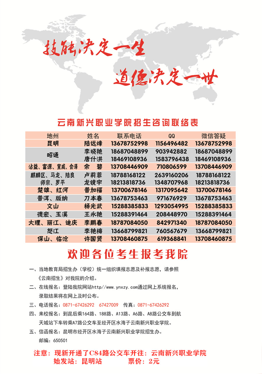 2020年Beat365唯一官方网站各地州招生负责老师咨询联络表及来校地址