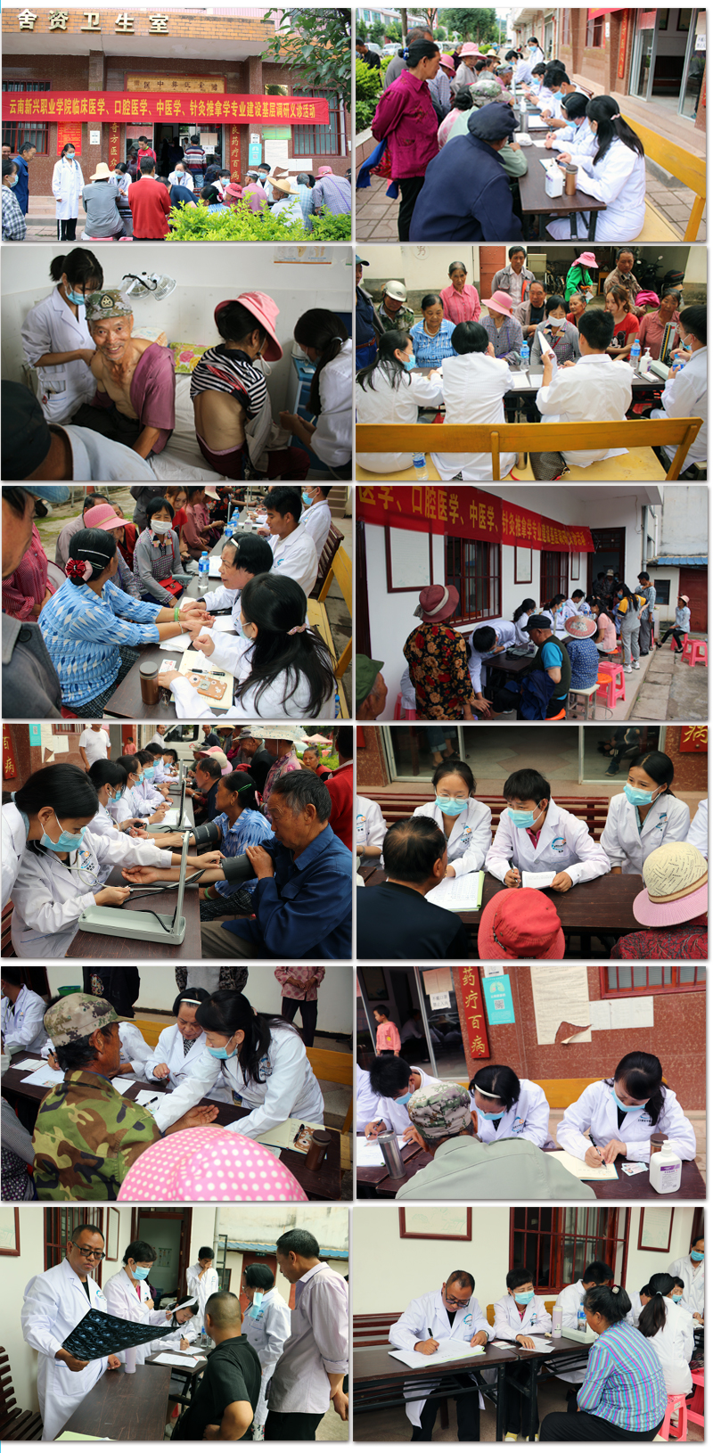 2020年8月6日-8月9日为期3天的时间,在学校潘琼副校长(副教授)的带领下,邀请了中医学专家武凤祥主任医师、云南省急救中心任玲主任医师、二级学院医学康复学院杨炳金院长、覃丹主治医师(讲师)、杨炽琼中医执业医师(助教)、关丽芬中医执业医师(助教)、蔡婵针灸推拿专业教师、李丝丝口腔医学专业教师、周浩中医学专业教师、李宽临床医学专业教师、孙新然临床医学专业教师等一行共计16位教师参加基层调研义诊活动。